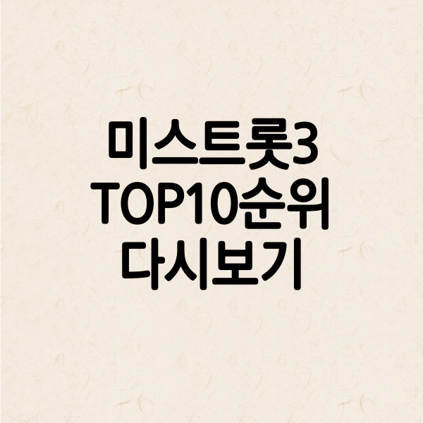 큰 인기를 끌고 있는 미스트롯 3TOP10이 결정됐습니다. 22일 방송된 미스트롯 3에서 쟁쟁한 경쟁을 펼치고, 드디어 TOP10에 오른 최종순위가 발표되었는데요. 영광스러운 TOP10명단을 지금 바로 미스트롯3 영상을 통해 확인해 보세요.
