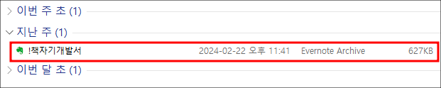 에버노트에서 내보내기해서 저장했던 파일을 불러옵니다.