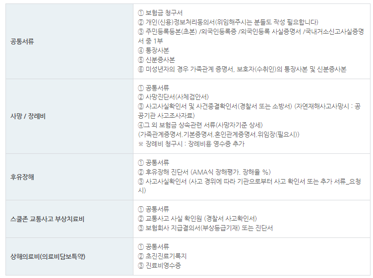◈공통서류:보험금청구서, 주민등록등(초) 본, 신분증사본, 통장사본등
