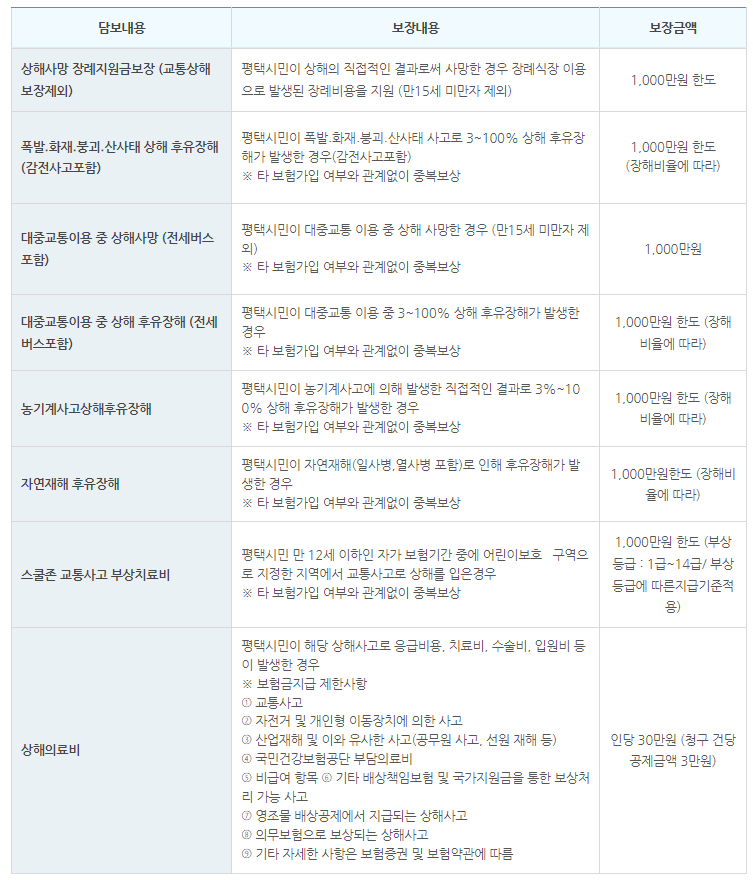 ◈ 피보험자: 평택시에 주민등록을 두고 있는 모든 시민(등록 외국인 포함)