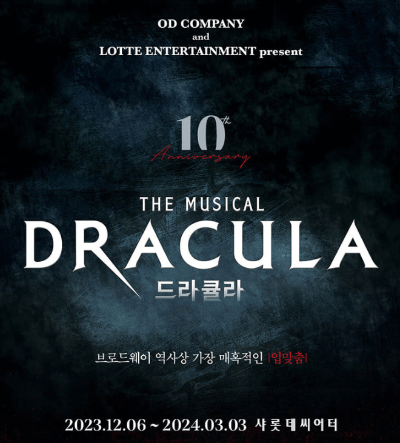 드라큘라 뮤지컬이 10주년 공연으로 돌아왔습니다. 죽음을 초월한 세기의 로맨스를 보여주는 멋진 뮤지컬인데요. 매 공연마다 많은 팬들을 보유하며, 판타지 뮤지컬의 새로운 역사를 써 내려가고 있는 드라큘라 뮤지컬! 역대 최고의 배우들이 함께한다니 놓치지 마시고 꼭 관람해 보시기 바랍니다.